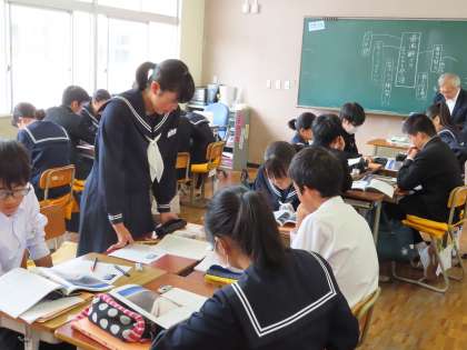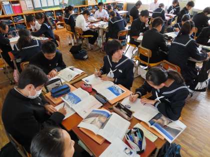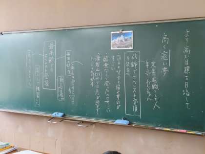 本日の3年生の1時間目は道徳でした。今日は第2回目です。各クラス先生がローテーションで回っています。3Aは瀧本先生です。より高い目標を目指して…「高く遠い夢」を行っていました。最高年齢でのエベレスト登頂したことが題材です。