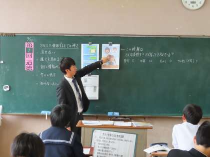 3Bは関沢先生です。情報モラルと友情…「合格通知」を行っていました。SNSに勝手に投稿されてしまったことについて考えていました。