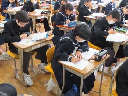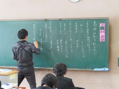 3Cは知野先生です。「島唱の心を伝えたい」地域の伝統芸能行事について考えています。島唱「朝花節」をCDで聞いていました。独特の節がある唱でした。