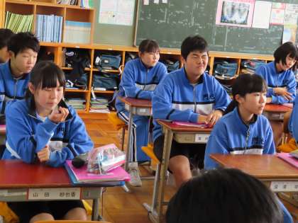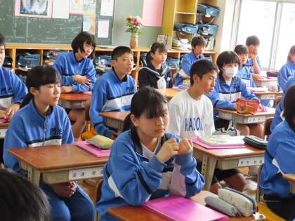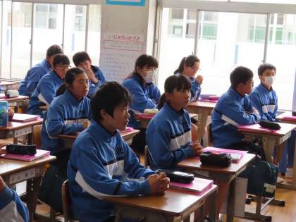 2Aは家庭科です。授業の始めは自然教室の話をしていました。ハイキング・約束など全般的な確認をしていました。