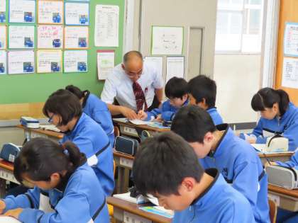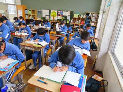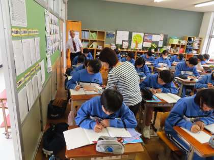 2Bは数学です。計算問題をしーんとした中、問題を解いていました。山開さんも授業に参加していました。