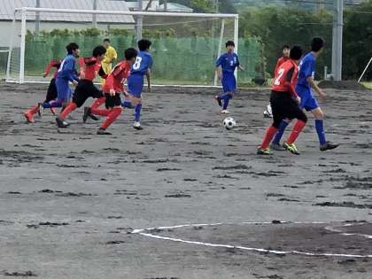 雨の中、静浦小中一貫校にて、前の週の結果各グループ2位が集まってのリーグ戦が