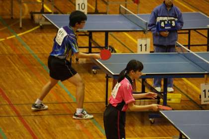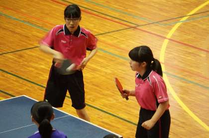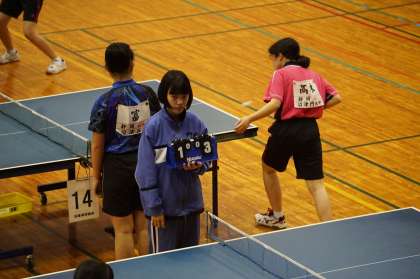 女子の予選リーグ2試合目は強豪第五中です。シングルス2つをとられましたが、ダブルス、シングルスをとり、2−2の同点で最後のシングルスを迎え、見事勝利しました。予選1位で決勝トーナメント進出です。
