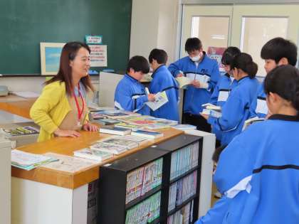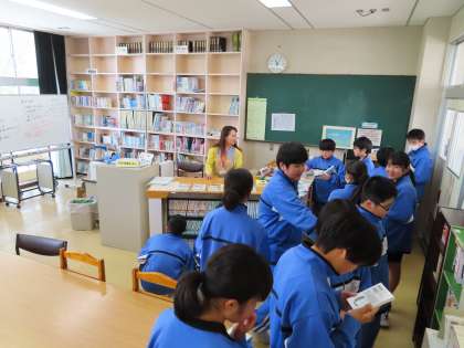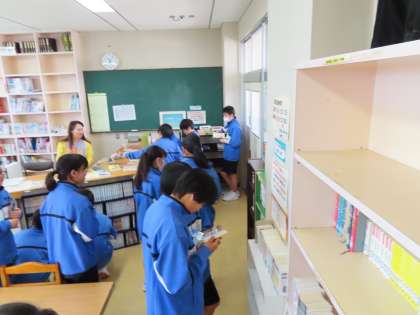1Aは図書館ガイダンスを行っていました。毎週月曜日に図書館に来ていただいている、司書の田中薫先生に、図書館の使い方を教えていただきました。