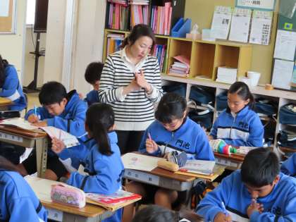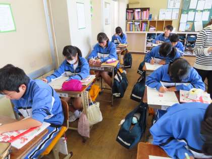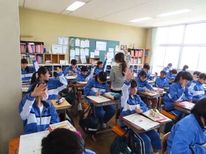 1Bは英語です。プログラム2を行っていました。プリントの英単語を並び替えて英文を完成させる問題でした。