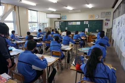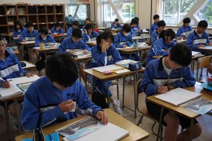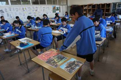 3年B組 美術の授業です。修学旅行に結びつけて自分が描くものの計画を立てています。修学旅行に思いをめぐらせているようです。
