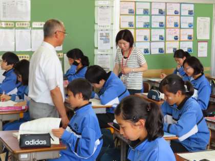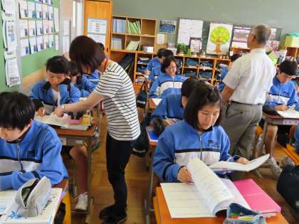 2Bは数学です。テストに向けて基礎問題集に取り組んでいました。今日も支援員の山開さんが入ってくれています。