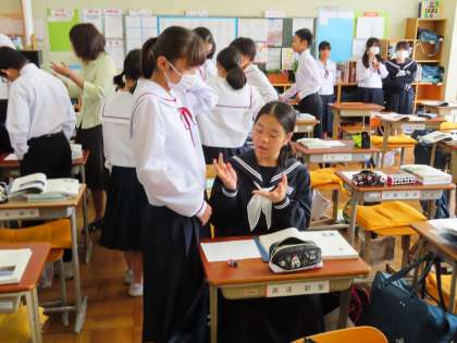 2Cは国語です。「記憶」と「過去を証明する証拠」との違いを考えていました。まわりの人との交流学習を行っています。