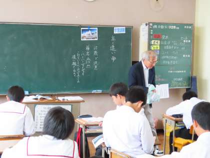 3Bは道徳です。より高い目標を目指して「遠く高い夢」を学習していました。瀧本先生の授業です。