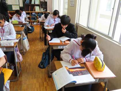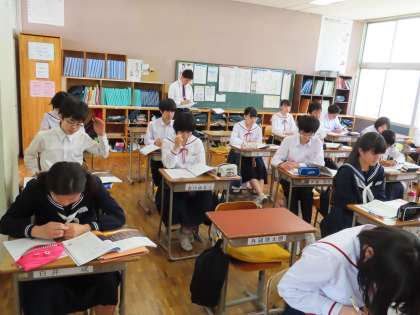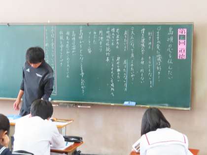 3Dは道徳です。「島唄の心を伝えたい」を行っていました。知野先生の授業です。古い物を受け継いでいくべきか、新しい物を伝えていくべきかを考えていました。