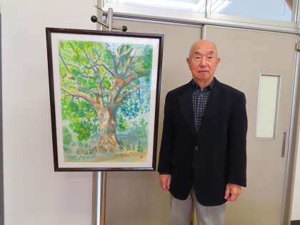 昨日、山崎 徹様が来校されました。3月に「岡宮浅間神社」にある大楠の木の絵を寄贈してくださいました。学校の様子を見に来られ、校長室にお寄りいただきました。絵と一緒に写真を撮らせていただきましたので、御覧ください。