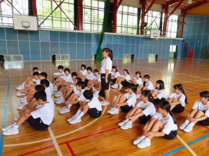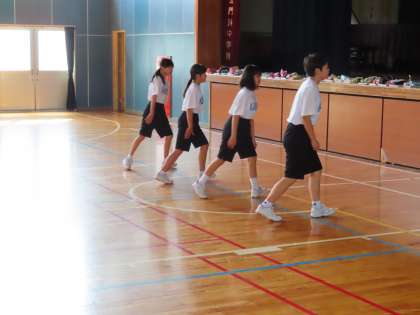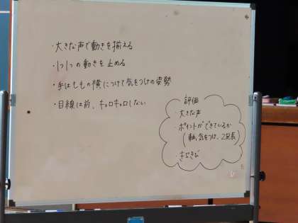 1Dは体育です。本日は「集団行動」の発表会です。発表が終わると自然に拍手が生まれていました。まt、よかったところもたくさん発表されていました。