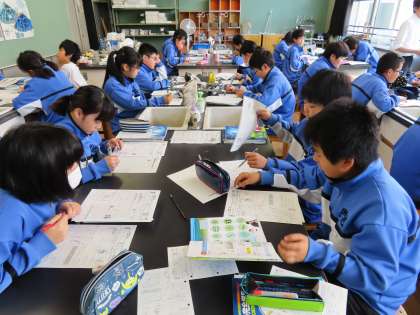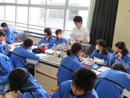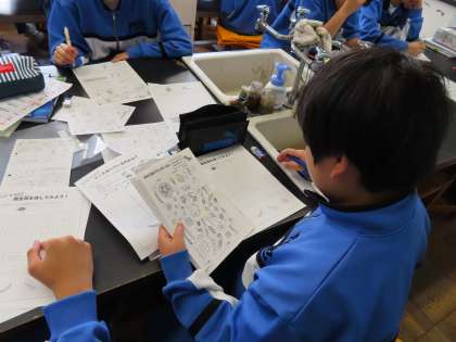 1Aは理科です。「身近な生物の観察」を行っていました。テスト前なので色々質問する生徒がいます。