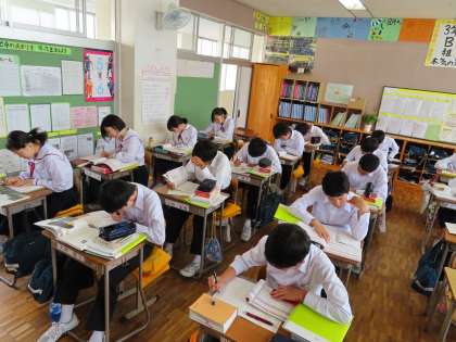 3Bは国語です。静かにテスト勉強をしていました。あすは中間テストです。がんばってください。