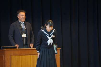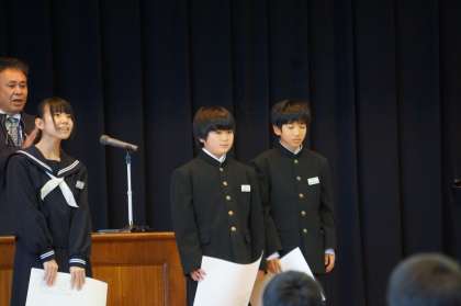 続いて、ジュニア県展、理科研究、人権作文の表彰がありました。