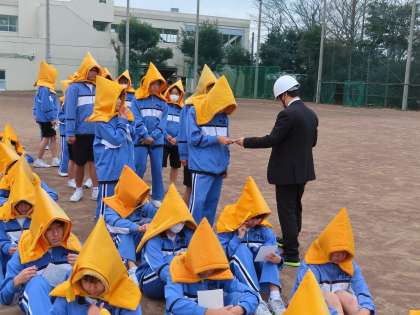 とても静かに行うことができました。100点の訓練です。先生達の人員点呼が完了したのが教室を出てから5分42秒です。その間走る足音と先生達の確認の声だけでした。常に異常事態に備えて行動することが大切です。