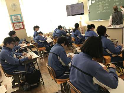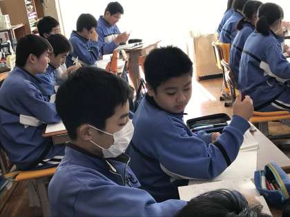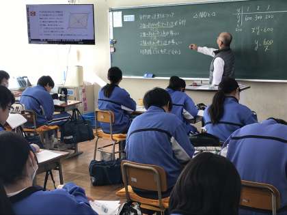 数学は平行四辺形について学習しています。平行四辺形の中にある合同な三角形をみつけています。金岡奨学会で購入していただいたデジタル教科書が活用されています。