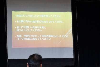 最後に駿東・伊豆消防本部です。沼津北消防署に勤務されている満田さんは、門池小、門池中の卒業生です。600人いる署員の中で、女性は14人と少ないそうです。