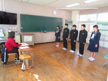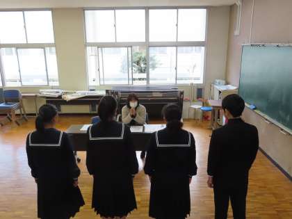 今年は集団面接に対する練習も行っていました。グループごとに立ったまま手を挙げて、自分の考えを述べていきます。個人面接以上に緊張していました。