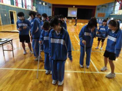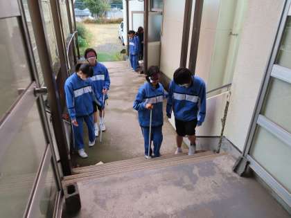 生徒にとっては初めての体験なので怖くてドキドキの体験です。真っ暗な世界の初体験です。健康な体がどれだけ恵まれているか、実感しました。