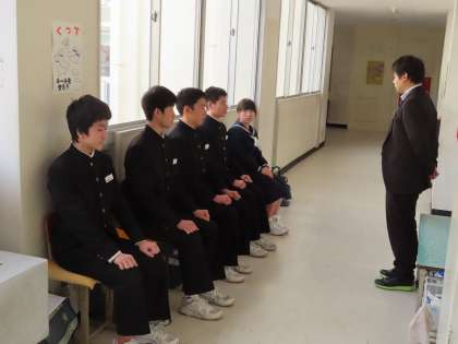 集団面接の練習も行っていました。自分と同じ事を言われてしまうと言いにくくなってしまうため、考えをたくさん持たないといけません。