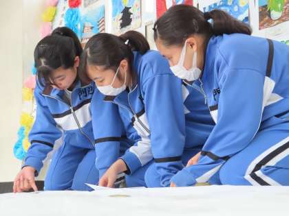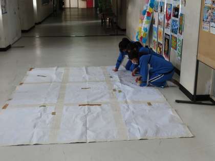 3年生が廊下の掲示物を作っていました。どんなものができるか楽しみです。