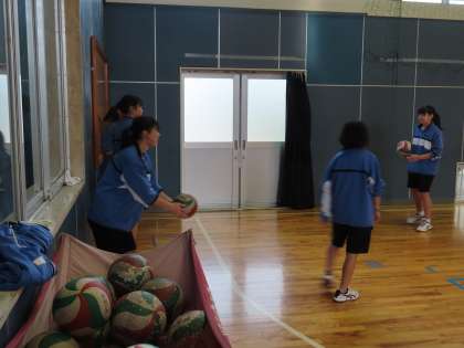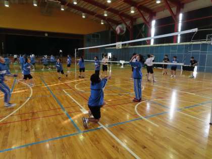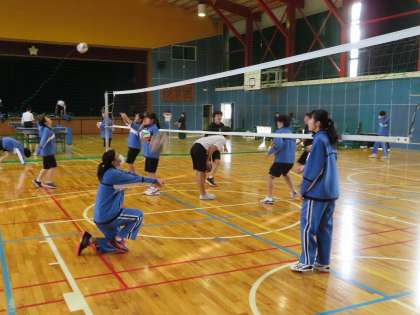 部活動の様子を体育館に見学に行きました。バレー部が私を見つけてすぐに挨拶をしてくれました。