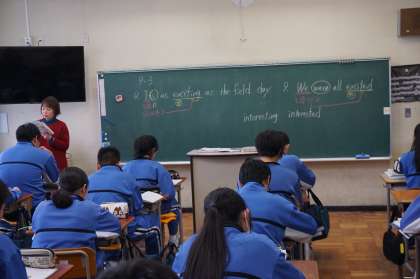 2Cは英語です。形容詞の表し方の違いや教科書の音読を進めていました。形容詞の表し方の違いは理解できたでしょうか。
