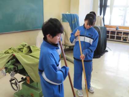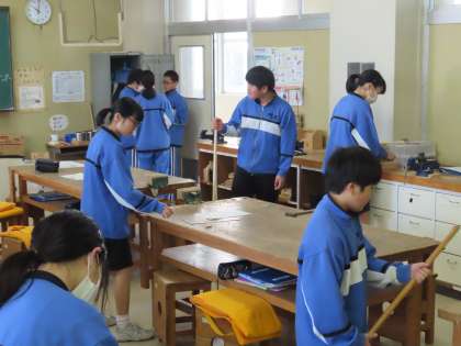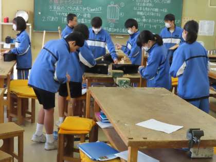 1Aは技術でした。木材加工を行っていますが、参観に行ったら片付けの時間となっていました。残念です。しかし、しっかり掃除をしていました。