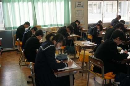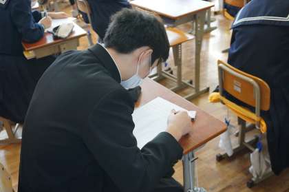 3年生は英語を書くだけでなく、日本語訳もあります。しかし日頃から勉強を続けてきたので、迷うことなく書き込んでいます。受験生として頼もしさを感じます。