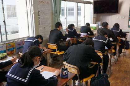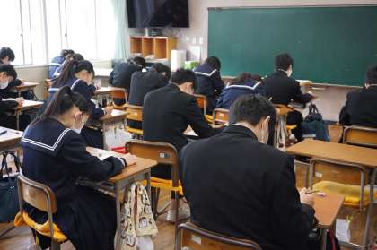 間もなく終了の時間です。終わった生徒は見直しを進めています。
