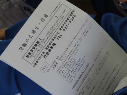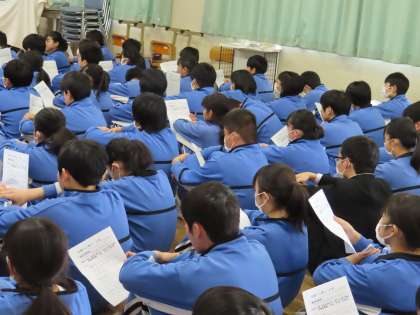 2月4日〜5日は、私立高校入試となります。前日に「事前の心構え・注意」を行いました。新音楽室に緊張した姿で現れました。