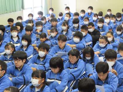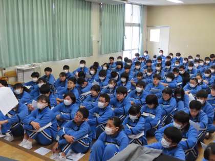 やはりマスクをしている生徒が多かったです。4日と5日の両日は試験会場ではマスク着用となっていますのでご持参ください。門池中3年生「頑張れ!」