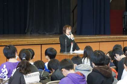 養護教諭の堤先生からは、ゲーム等との付き合い方や、健康診断についての話がありました。6年生はしっかりと話を聞いていました。