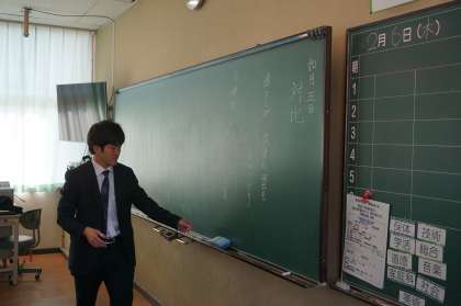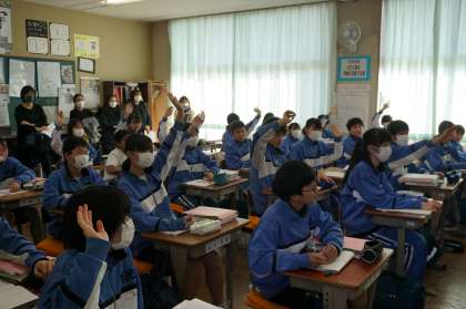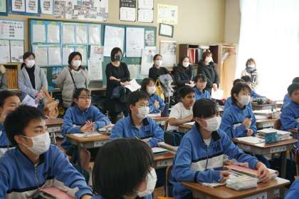 B組は国語です。俳句の季語についての授業です。赤とんぼが季語であり、秋を表していることは多くの生徒が分かりました。次はどんなものが出てくるでしょう。