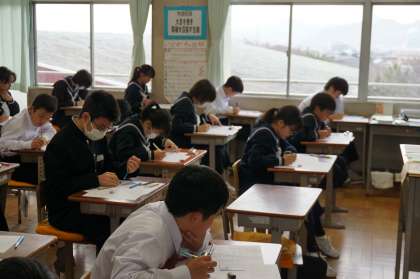 C,D組の様子です。作図の問題もあります。鉛筆のこすれる音が教室に響きます。