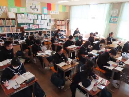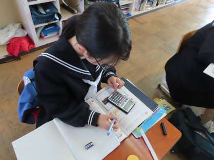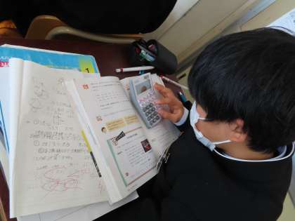 1Cは数学です。平均値・中央値・最頻値を求める学習でした。計算機を片手に計算をしていました。