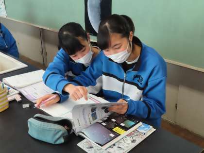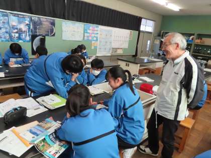 3Bの授業は理科でした。プリント学習をしています。お互いに教え会いながらプリントを行っていました。どうしてもわからないときには「SOS」を瀧本先生にだしています。