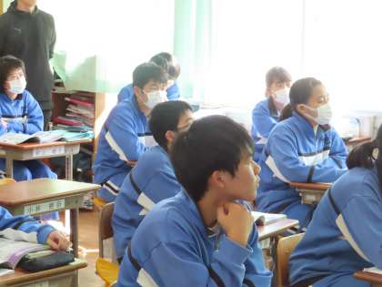 3Aは保健の授業でした。「性感染症について」の授業です。映像資料を見ている時間でした。真剣な眼差しが印象的でした。