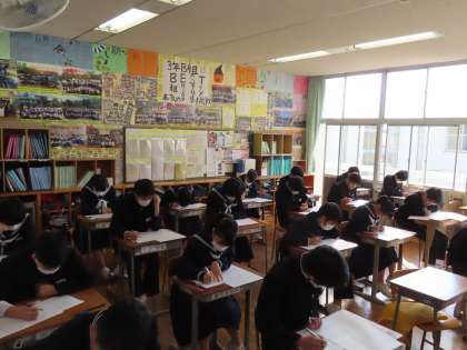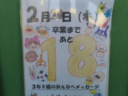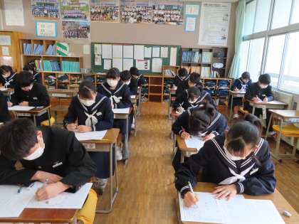 3年生も期末テストです。中学校生活最後の定期テストとなります。国語・数学・英語・社会・理科の順番です。3年生の廊下にも、卒業までの残り日数(学校に来ることのできる日)が掲示されています。もうあと少しになってしまいました。