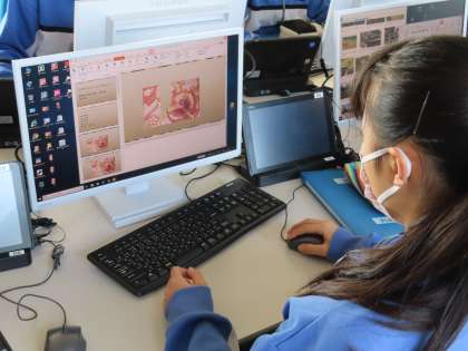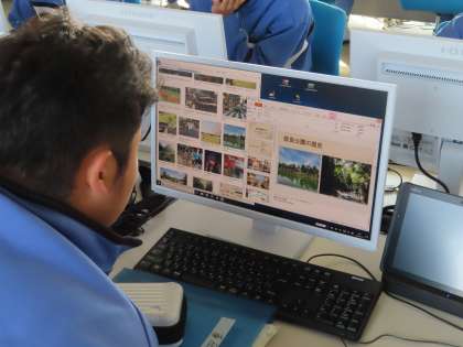 2Aは技術です。修学旅行で行く、京都奈良についての説明用のパワーポイントを作成していました。色んな事について調べていました。