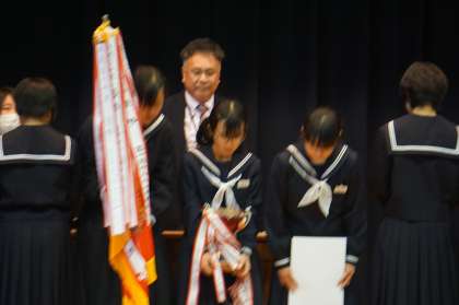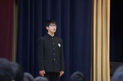 生徒会長勝又さんのさわやかな挨拶で朝礼が始まりました。