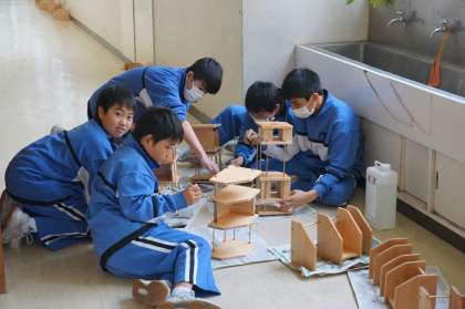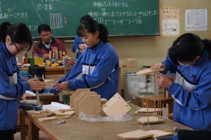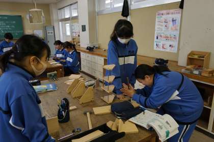 1Bは技術です。スライドラックの作成です。多くの生徒が仕上げに入っています。