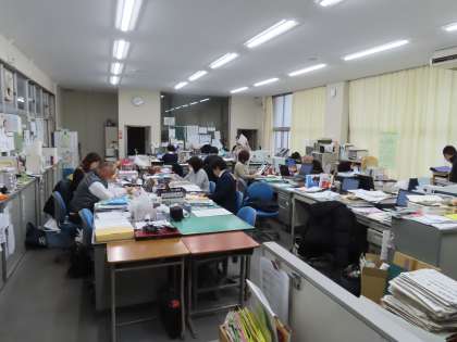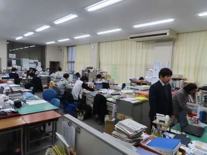 朝の職員室の様子です。いつものように8:00から職員の朝の打合せを行いました。