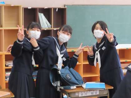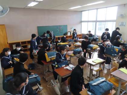 教室に入った3年生は、思い々の時間を過ごしました。8:30には、担任の先生が教室に向かいます。