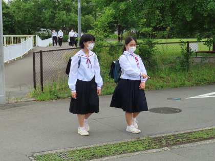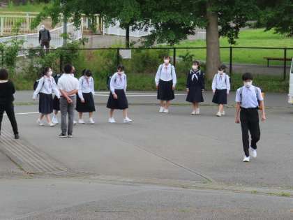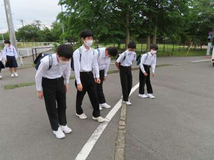 10:50頃になって三年生が登校し始めました。先生達も生徒を迎えてくれています。止まって「挨拶」がしっかりできています。さすが三年生!