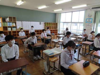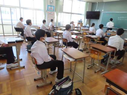 3Aは遠藤先生です。3年生は去年と同じ教室配置になりました。使い慣れた廊下・教室ですが、やはり最高学年となると少し緊張が見られました。音楽室での面談です。