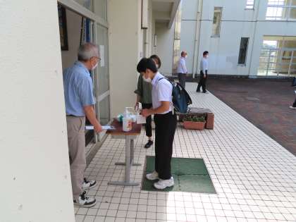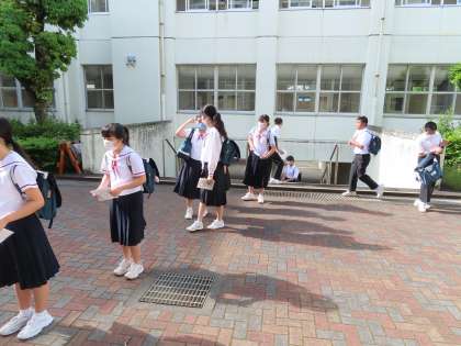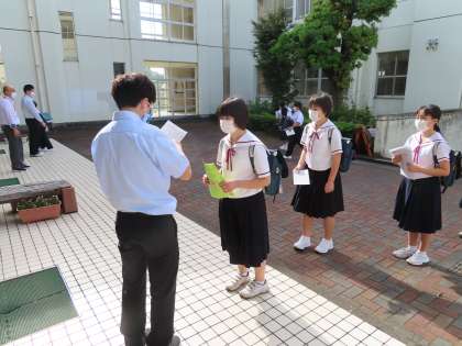 曇り空だった空が、晴れてきました。少し湿気を感じる朝です。しかし、門池中生は元気に登校してきました。