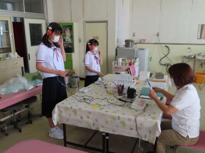 どんな本を読んでいるのでしょう。廊下は「しーーーん」と静かです。2人ずつの検査です。少し緊張ぎみです。