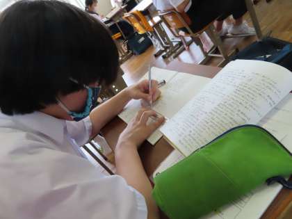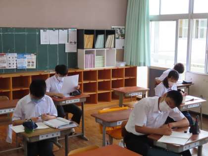 2年生の分散登校の様子です。やはり自習中ははとっても静かです。面談も順調に進んでいるようです。